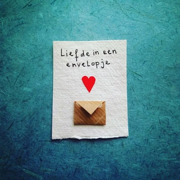 ‘Een tijdje terug kwam ik onbedoeld terecht op de facebookpagina van Happy Little Moment. Mijn aandacht was direct gevangen door de prachtige, handgemaakte kaartjes. Geen tierelantijntjes, maar stoere materialen, minimalistische ontwerpen en telkens met een mooie boodschap. Verder kijkend ontdekte ik dat de (anonieme) maker de kaartjes achter laat in publieke ruimtes, wachtend op een willekeurige vinder. Ik nam contact op met de persoon achter het project en zij vertelde mij er meer over.’