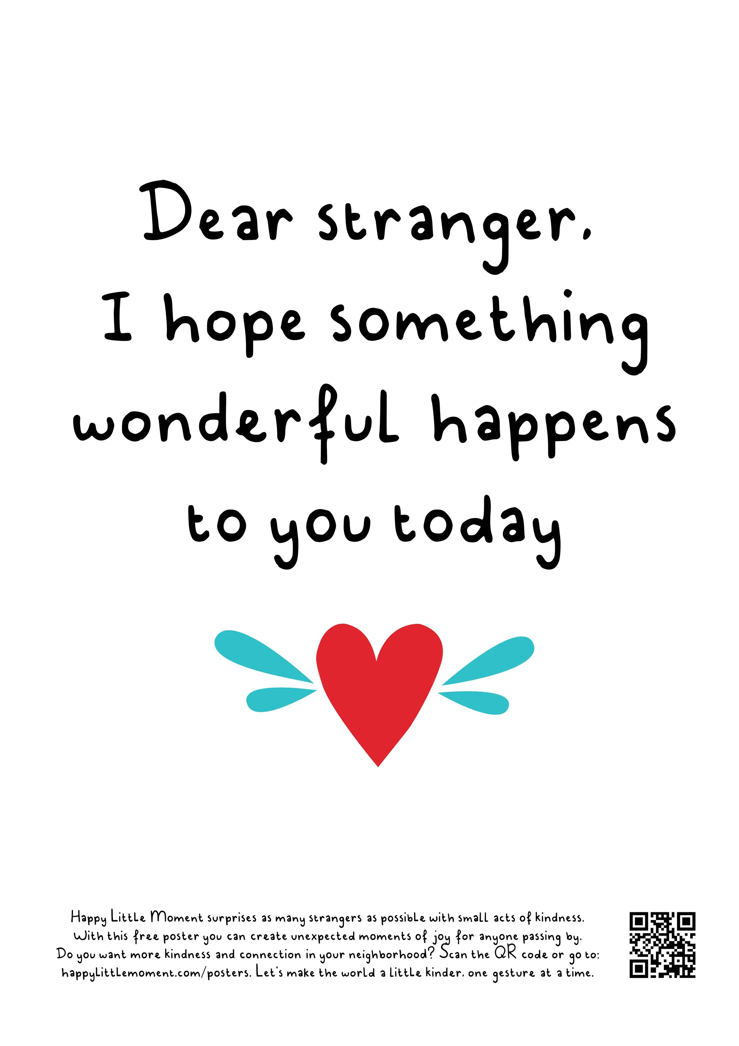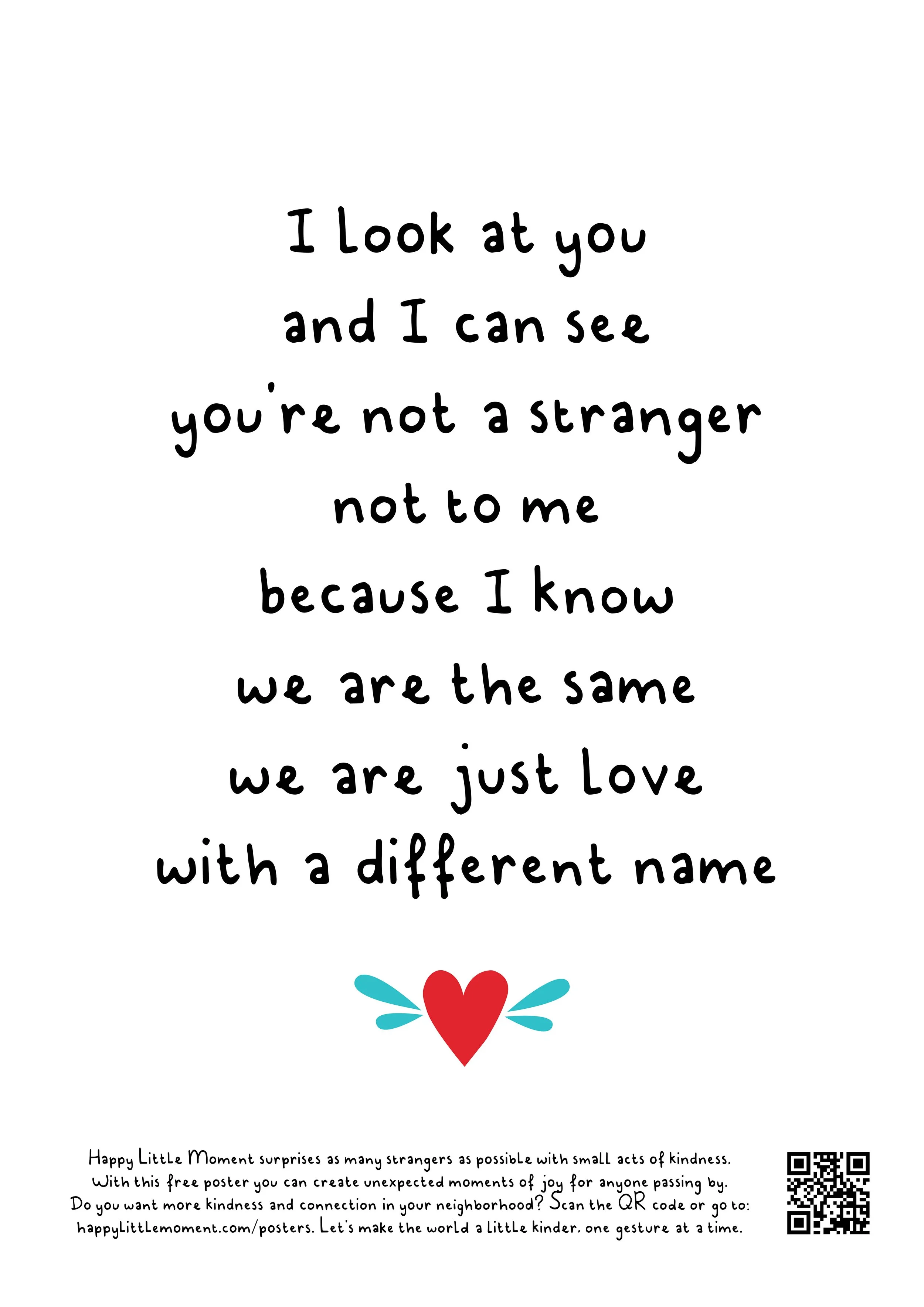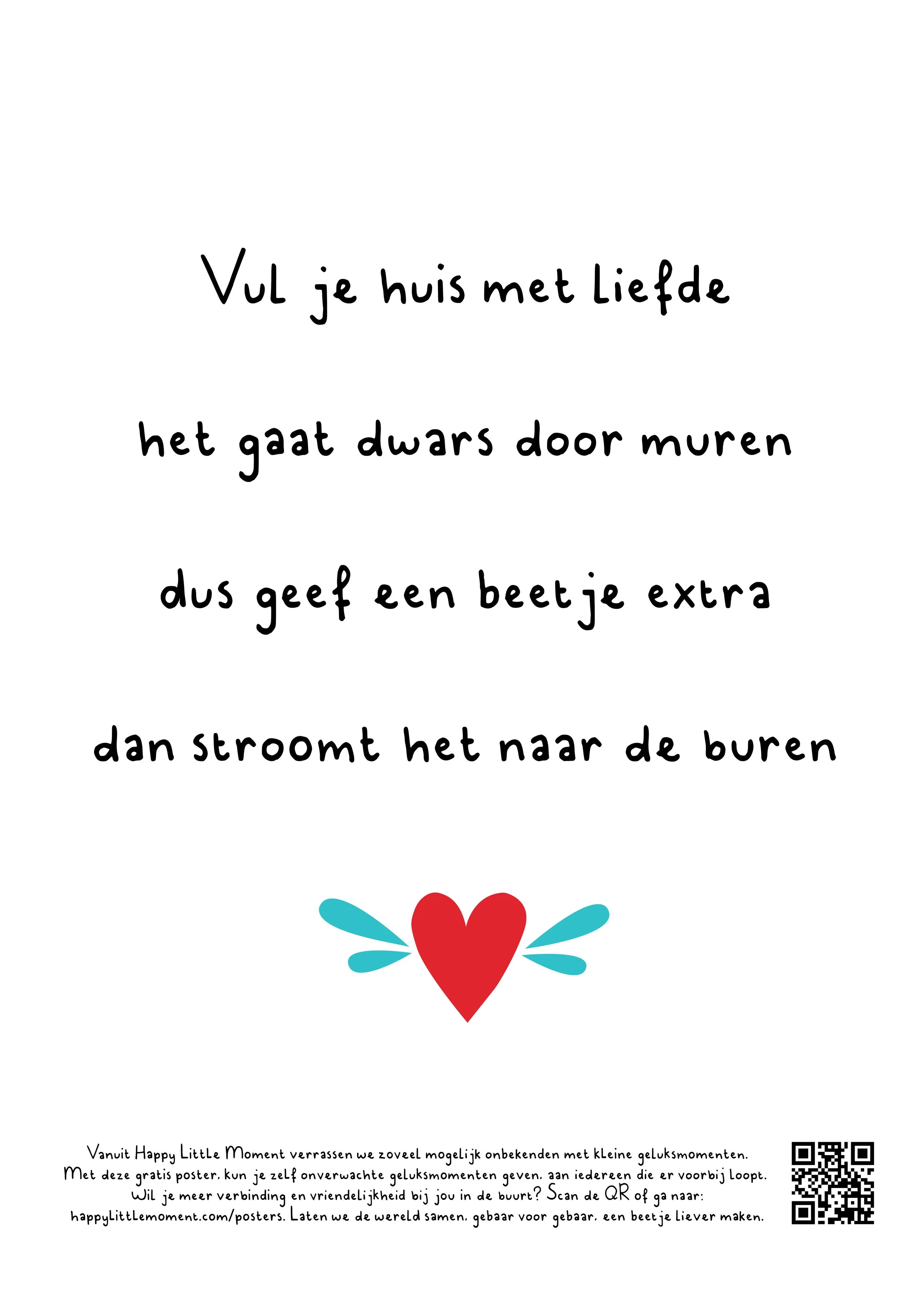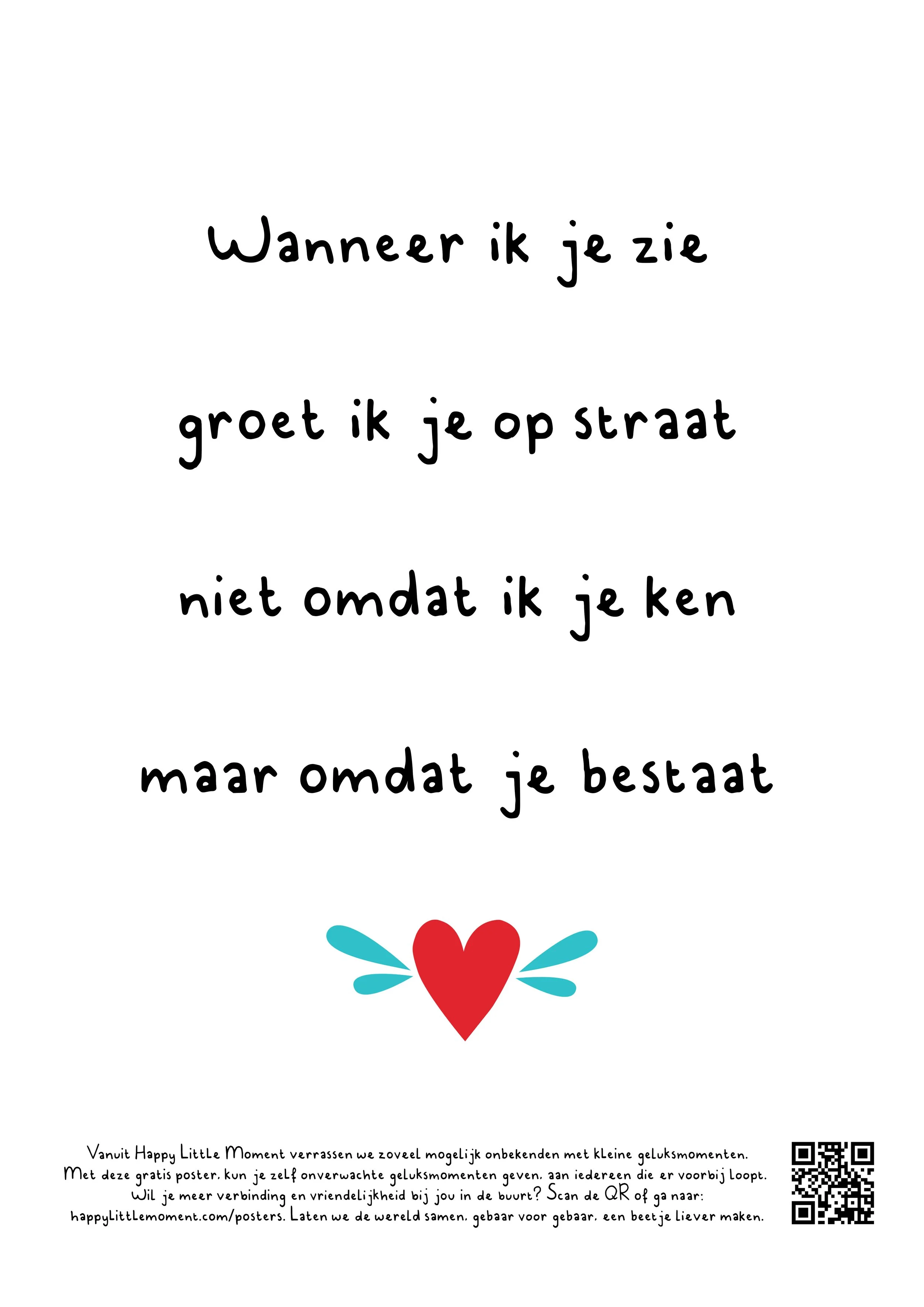 Wil je meer verbinding en vriendelijkheid bij jou in de buurt? Print gratis jouw eigen poster en verspreid kleine geluksmomenten.