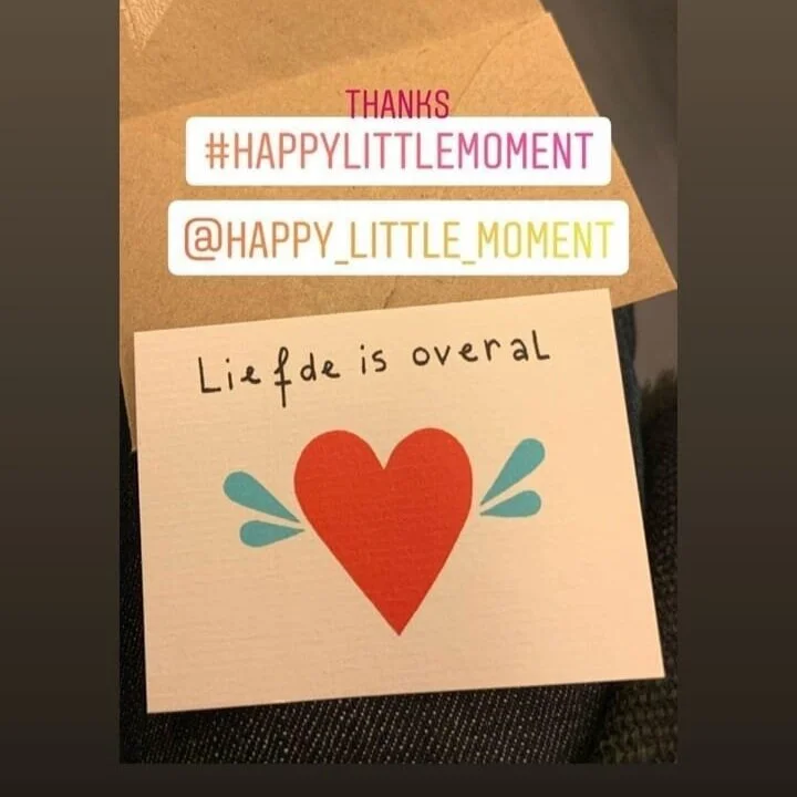 “Ik vond vandaag dit kaartje op Utrecht Centraal. Toen ik het opende kreeg ik even een warm gevoel door de bescheidenheid van het gebaar maar de grote boodschap ervan. Liefde is overal - maar soms vergeten we dat een beetje of willen we er niet meer in geloven. Maar dat betekent niet dat het er niet is. Door dit soort kleine reminders sta je er wel even bij stil. Liefde uit zich niet op één manier en gaat door waar al het andere stopt. Dus ja, het is overal. Besef even en wees dankbaar. Wat een leuk initiatief van Happy Little Moment. Mijn dag begint goed ♥”