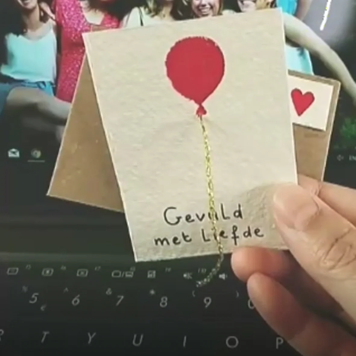 “Dag lieve lievekaartjesmaakster, Ik vond je mooie met liefde gevulde envelopje vandaag in de trein. Het kwam zo op het goede moment. Een klein geschenkje uit de hemel. Dank je wel! X”