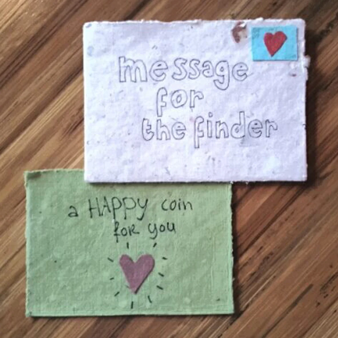 “Zo verrassend....! Ik was vanmiddag een gelukkige vinder van een van je kaartjes in Starbucks op HC in Utrecht. Getroffen was ik door het mooie handwerk waar duidelijk aandacht en liefde aan was besteed! Slechts een paar minuten later liep ik met mijn twee kids naar het opwaardeerapparaat voor een van de OV chipkaarten en iemand kwam naar me toe met twee dagkaarten die hij en zijn vriendin niet meer nodig hadden. Zo konden we gratis terug naar Amsterdam reizen. Samen dus drie bijzondere kaartjes in drie ongeveer drie minuten...! Dank jullie alledrie. ❤️❤️❤️”